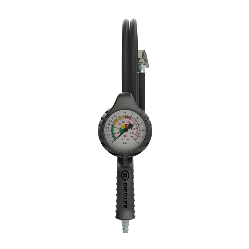 Riegler Standard-Handreifenfüllmesser mit Momentstecker, 3 m Schlauch drehbar, Mano Ø 80 mm, ungeeicht, 0-12 bar/170 psi, Stecknippel NW 7,2, 137626