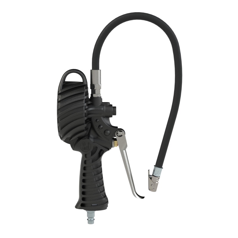 Standard-Handreifenfüllmesser mit Momentstecker, Schlauch drehbar, Mano Ø 80 mm, geeicht, 0-12 bar/170 psi, Stecknippel NW 7,2. Robuster Standard-Handreifenfüllmesser mit vollgummierter Schutzhülle, Druckmanometer mit bar- und psi-Anzeige. Mit Stecknippel für Kupplung NW 7,2 - 7,8.