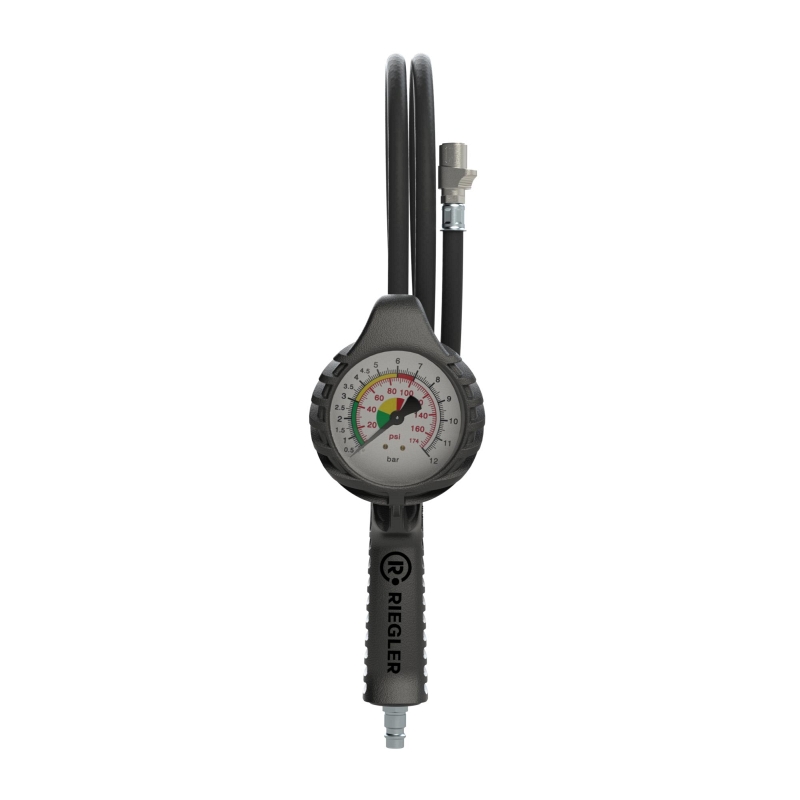 Riegler Standard-Handreifenfüllmesser mit QUIK-LOK Stecker, 3m Schlauch drehbar, Mano Ø 80 mm, ungeeicht, 0-12 bar/170 psi, Stecknippel NW 7,2, 137648, 4047322753197