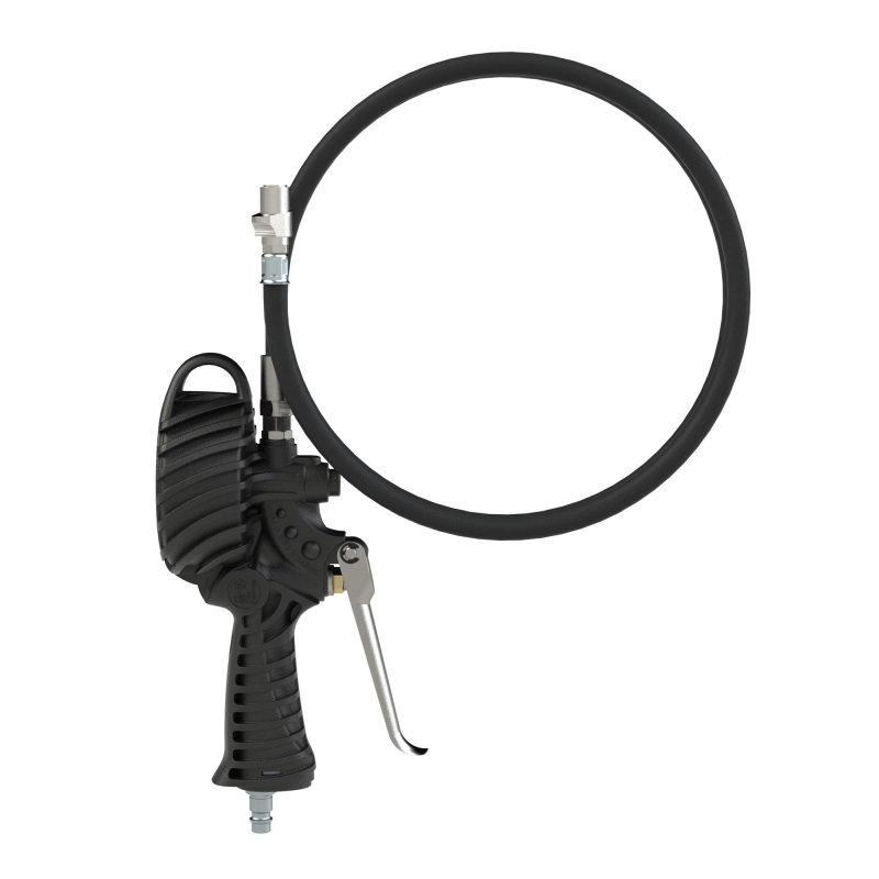 Standard-Handreifenfüllmesser mit QUIK-LOK Stecker, 3m Schlauch drehbar, Mano Ø 80 mm, ungeeicht, 0-12 bar/170 psi, Stecknippel NW 7,2. Robuster Standard-Handreifenfüllmesser mit vollgummierter Schutzhülle, Druckmanometer mit bar- und psi-Anzeige. Mit Stecknippel für Kupplung NW 7,2 - 7,8.