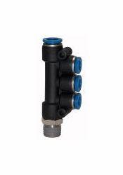 T-Mehrfachverteiler Blaue Serie, drehbar, R 1/8 a, für Schlauch-Außen-Ø 4x4 mm, Arbeitsdruck max. 15 bar, Kunststoff/MS vern.. Unsere Schnellsteckverbinder-Serie aus Kunststoff bzw. vernickeltem Messing. Die Teile sind einsetzbar in Verbindung mit Kunststoffschläuchen und Kupferrohren.