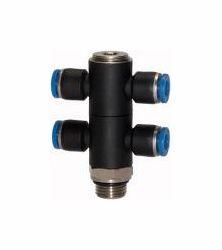 T-Mehrfachverteiler Blaue Serie, 4-fach, drehbar, G 1/8 a, für Schlauch-Außendurchmesser 4 mm, Arbeitsdruck max. 15 bar, Kunststoff/MS vern.. Unsere Schnellsteckverbinder-Serie aus Kunststoff bzw. vernickeltem Messing. Die Teile sind einsetzbar in Verbindung mit Kunststoffschläuchen und Kupferrohren.