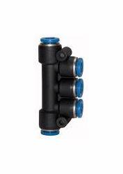 T-Mehrfachverteiler, Steckanschluss Blaue Serie, für Schlauch-Außen-Ø 5x4 mm, Arbeitsdruck max. 15 bar, Kunststoff/MS vern.. Unsere Schnellsteckverbinder-Serie aus Kunststoff bzw. vernickeltem Messing. Die Teile sind einsetzbar in Verbindung mit Kunststoffschläuchen und Kupferrohren.