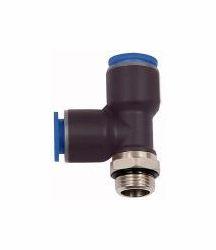 T-Steckverschr. Blaue Serie, L-Form, drehbar, M5 a., für Schlauch-Außen-Ø 4 mm, Arbeitsdruck max. 15 bar, Kunststoff/MS vern.. Unsere Schnellsteckverbinder-Serie aus Kunststoff bzw. vernickeltem Messing. Die Teile sind einsetzbar in Verbindung mit Kunststoffschläuchen und Kupferrohren.