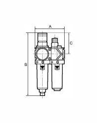 Wartungseinheit 2-tlg. variobloc, Polycarbonatbehälter und Schutzkorb, BG 2, G 1, PE max. 16 bar, Mediums- und Umgebungstemperatur max. 50 C. Zweiteilige Wartungseinheiten bestehend aus einem vordruckunabhängigen, rücksteuerbaren Membrandruckregler mit Sekundärentlüftung in Verbindung mit einem Zentrifugalabscheider und einem Proportionalöler. Bewährte Serie in modernem Industriedesign, die sich durch einfaches Handling, bequeme Verblockungsmöglichkeit durch neuartige Verbindungsmodule und hervorragende Durchflusswerte auszeichnet.
