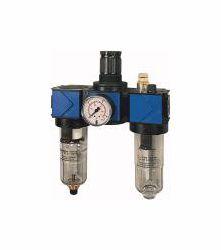 Wartungseinheit 3-tlg. variobloc mit Polycarbonatbehälter, BG 1, G 3/8, PE max. 16 bar, Mediums-Umgebungstemperatur max. 50 C. Dreiteilige Wartungseinheiten bestehend aus einem vordruckunabhängigen, rücksteuerbaren Membrandruckregler mit Sekundärentlüftung in Verbindung mit einem Zentrifugalabscheider und einem Proportionalöler. Bewährte Serie in modernem Industriedesign, die sich durch einfaches Handling, bequeme Verblockungsmöglichkeit durch neuartige Verbindungsmodule und hervorragende Durchflusswerte auszeichnet.