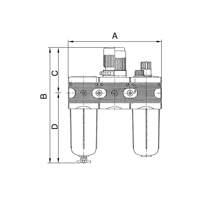 Wartungseinheit 3-teilig »multifix«, PC-Behälter und Schutzkorb, BG 4, G 3/4, Eingangsdruck max. 16 bar, Regelbereich 0,5 - 10 bar. Dreiteilige Wartungseinheiten, bestehend aus einem vordruckunabhängigen, rücksteuerbaren Membrandruckregler mit Sekundärentlüftung, einem Zentrifugalabscheider und einem Proportionalöler.