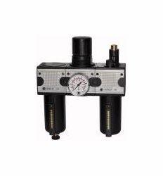 Wartungseinheit 3-tlg. multifix, Metallbehälter und Sichtrohr, BG 1, G 3/8, Eingangsdruck max. 20 bar, Regelbereich 0,5 - 10 bar. Dreiteilige Wartungseinheiten, bestehend aus einem vordruckunabhängigen, rücksteuerbaren Membrandruckregler mit Sekundärentlüftung, einem Zentrifugalabscheider und einem Proportionalöler.
