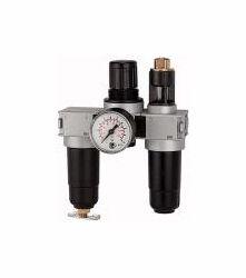 Wartungseinheit 3-tlg. multifix-mini mit Metallbehälter, BG 0, G 1/8, Eingangsdruck max. 12 bar, Regelbereich 0,5 - 10 bar. Dreiteilige Wartungseinheiten, bestehend aus einem vordruckunabhängigen Membrandruckregler mit Sekundärentlüftung in Verbindung mit einem Zentrifugalabscheider und einem Proportionalöler.
