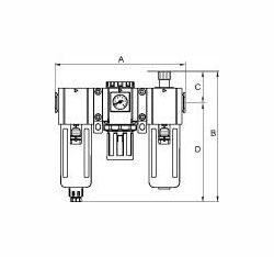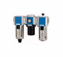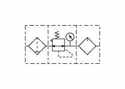 Wartungseinheit 3-tlg. G mit PC-Behälter u. Schutzkorb, 5 m, BG 400, G 1/2, PE max. 10 bar, Regelbereich 1,5 - 9 bar, Ablass HA. Dreiteilige Wartungseinheiten, bestehend aus einem vordruckunabhängigen Membrandruckregler mit Sekundärentlüftung in Verbindung mit einem Zentrifugalabscheider und einem Proportionalöler.