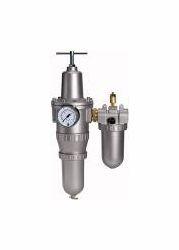 Wartungseinheit 2-tlg. Standard, Metallbehälter und Tropfaufsatz Metall, BG 1, G 3/8, PE max. 25 bar, Regelbereich 0,5 - 16 bar. Zweiteilige Wartungseinheiten, bestehend aus einem vordruckunabhängigen, rücksteuerbaren Membrandruckregler mit Sekundärentlüftung in Verbindung mit einem Zentrifugalabscheider und einem Proportionalöler.