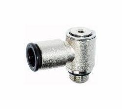Winkelschwenkverschraubung value line, drehbar, M5 a., für Schlauch-Außen-Ø 4 mm, Betriebsdruck max. 16 bar, Messing vernickelt. Preiswerte, qualitativ sehr hochwertige Serie von Steckverbindern aus vernickeltem Messing. Kleine, platzsparende Bauweise und geringes Gewicht. Bei den Teilen mit Außengewinde sorgt ein O-Ring in der Hohlkehle am Ende des Gewindes für eine dichte Verbindung auch an rauen Oberflächen.