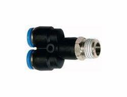 Y-Steckverschraubung Blaue Serie, drehbar, R 1/8 a, für Schlauch-Außen-Ø 4 mm, Arbeitsdruck max. 15 bar, Kunststoff/MS vern.. Unsere Schnellsteckverbinder-Serie aus Kunststoff bzw. vernickeltem Messing. Die Teile sind einsetzbar in Verbindung mit Kunststoffschläuchen und Kupferrohren.