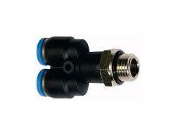 Y-Steckverschraubung Blaue Serie, drehbar, M5 a., für Schlauch-Außen-Ø 4 mm, Arbeitsdruck max. 15 bar, Kunststoff/MS vern.. Unsere Schnellsteckverbinder-Serie aus Kunststoff bzw. vernickeltem Messing. Die Teile sind einsetzbar in Verbindung mit Kunststoffschläuchen und Kupferrohren.