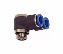Y-Winkelsteckverschr. Blaue Serie, drehbar, M5 a., für Schlauch-Außen-Ø 4 mm, Arbeitsdruck max. 15 bar, Kunststoff/MS vern.. Unsere Schnellsteckverbinder-Serie aus Kunststoff bzw. vernickeltem Messing. Die Teile sind einsetzbar in Verbindung mit Kunststoffschläuchen und Kupferrohren.