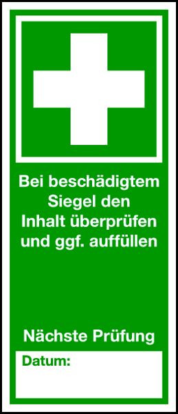Schilder Klar Bei beschädigtem Siegel den Inhalt überprüfen und ggf. auffüllen (1 VE = 5 Stück 70 x 30 mm), 70x150 mm Dokumentenfolie selbstklebend, 440/61