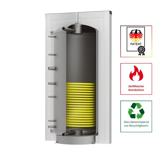 Schichtleit-Pufferspeicher SLS mit großflächigem Solarwärmetauscher und patentiertem thermohydraulischem Schichtleitsystem "SLS".