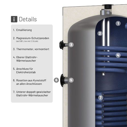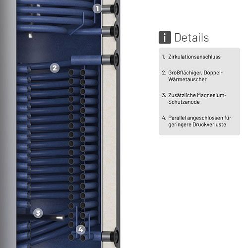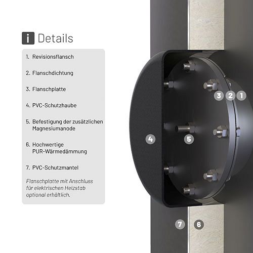 - Anode: 1x DN32 (1 1/4" IG), vormontiert