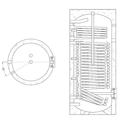 - Wärmetauscher oben: 2x DN32 (1 1/4" IG)