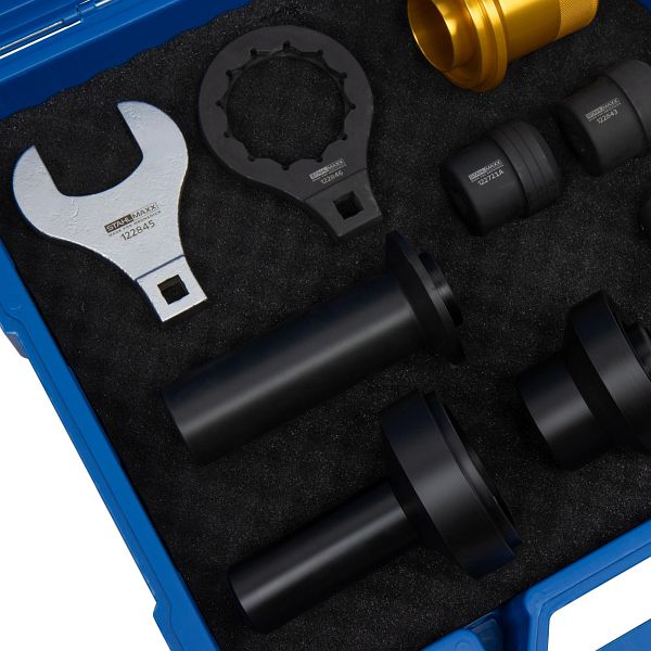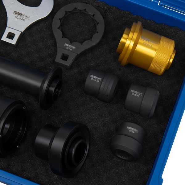 Zum zum Lösen und Anziehen der Flansch-, bzw. Einlegemutter und zum Erneuern der Wellendichtringe an (Kardanwelle-) Eingangswelle, Antriebswelle aller Differentiale und Ausgangswellen am Verteilergetriebe, bei vielen Modellen von BMW.