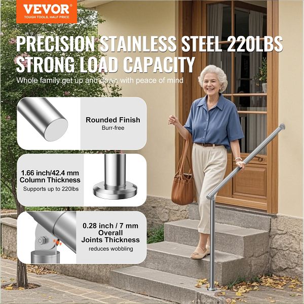- 220 lbs / 99 kg Belastbarkeit: Dieses Treppengeländer ist auf Langlebigkeit ausgelegt und bietet zuverlässige Sicherheit für ältere Menschen und Kinder. Sein verstärktes Design bietet bequemen Halt und gewährleistet eine sichere Nutzung für schwangere Frauen und Senioren beim Treppensteigen.