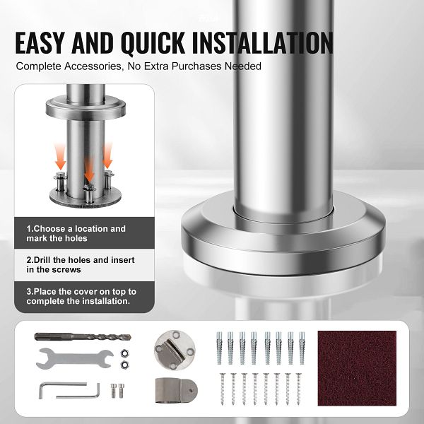 - Robustes Zubehör: Wir liefern einen kompletten Satz Montagezubehör, einschließlich Schrauben, Muttern, Spreizbolzen und Metallankern, für eine robuste Unterstützung an beiden Enden. Dieses umfassende Set gewährleistet einen reibungslosen und sicheren Installationsprozess.