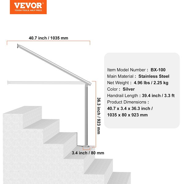 VEVOR 103cm Handlauf Treppengeländer Geländer Eingangsgeländer, Außentreppen, BXGDLZFS100CGRQ1IV0, 0197988582182