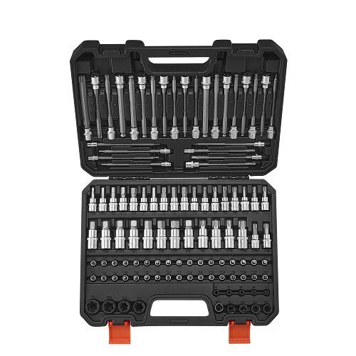 Metrische & SAE-Kompatibilität: Dieses 107-teilige manipulationssichere Torx-Steckschlüsselset umfasst 14 E-Torx-Steckschlüssel, 35 Sechskant-Bohrer-Steckschlüssel, 17 manipulationssichere Torx-Steckschlüssel, 14 Torx-Bohrer-Steckschlüssel, 11 lange Torx-Bohrer-Steckschlüssel und 16 verlängerte Sechskant-Steckschlüssel mit Kugelkopf – alles, was Sie brauchen, in einem Werkzeugsatz