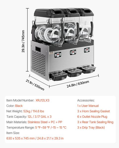 VEVOR 12Lx3 Kommerzielle Slusheis Maschine XRJ12LX3, Margarita Smoothie Getränk Maker, SYXRJX312LSGJ1LX3V2, 0197988998457