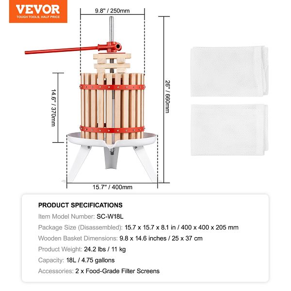 VEVOR 18 L Obstpresse Apfelpresse Fruchtpresse, LSGJYZJMM18L8K9OTV0, 0840349935768