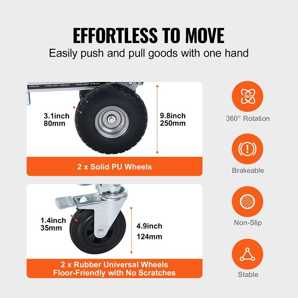 - Tragfähigkeit: 1000 lbs/454 kg (Plattformwagen); 700 lbs/318 kg (Sackkarre)