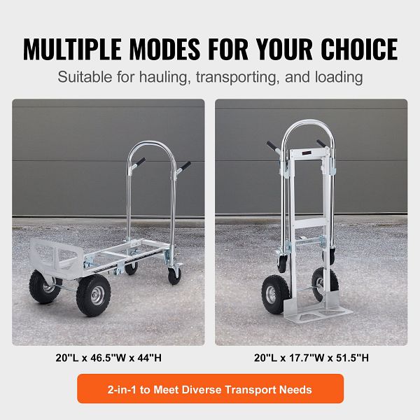 VEVOR 2-in-1 Sackkarre Klappbar 318/454kg Tragfähigkeit Transportkarre Aluminiumlegierung & Kohlenstoffstahl Sackkarre, DGNSTHC1000BJ1CRXV0, 0840349968391