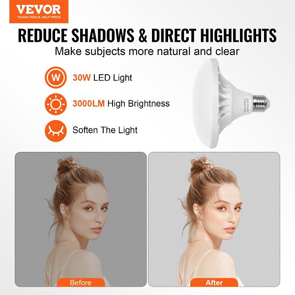 - Anpassbare Beleuchtung: Neue LED-Energiesparlampe mit 5500 K Helligkeit. Hocheffiziente Wärmeableitungs-LED-Lampe mit Fallschutz, bis zu 8000 Stunden Lebensdauer. Sie können den gewünschten Lichteffekt anpassen, um sicherzustellen, dass Ihre Aufnahmen klar sind.
