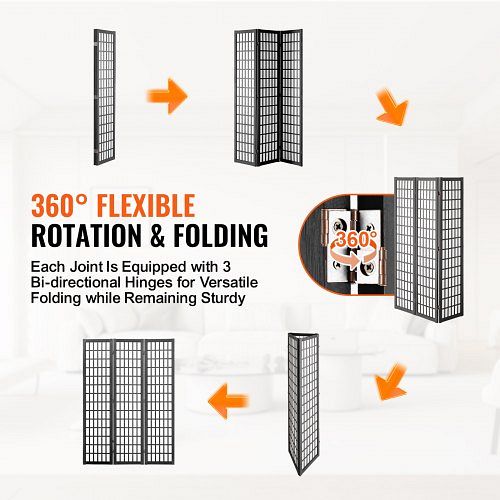 360° Drehen & Falten: Jedes Raumteilerpaneel ist mit drei flexiblen bidirektionalen Scharnieren verbunden, sodass Sie es um 360° drehen und in jede Richtung falten können. Dieses Design sorgt für Stabilität während der Verwendung. Wenn Sie diesen Raumteiler nicht verwenden, falten Sie ihn einfach zusammen und verstauen Sie ihn in einer Ecke – kein Durcheinander, nur Bequemlichkeit. Stellen Sie ihn im Zickzack auf, um zusätzlichen Halt zu bieten und ein Umkippen zu vermeiden.