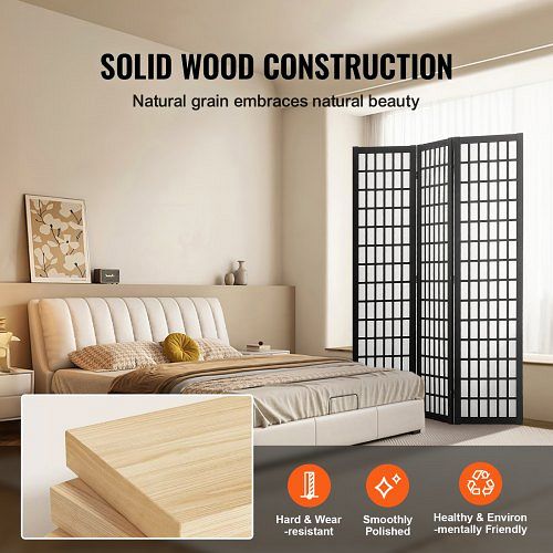 Japanischer Minimalismus: Der VEVOR-Raumteiler wertet Ihren Raum auf, und dieser 47,4-Zoll-Raumteiler (1205 mm) im japanischen Stil ist mit drei eleganten Paneelen gestaltet, die viel Privatsphäre bieten. Sein schlankes, symmetrisches Holzgitter ist die ideale Mischung aus Funktionalität und Stil und verleiht Ihrem Zuhause einen Hauch klassischen japanischen Charmes, während Sie bequem wohnen können.