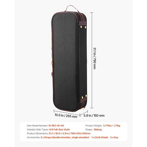 VEVOR 4/4 Violinenkoffer mit Hygrometer, Weichfutter, Schultergurten, kratzfest, für Violine, schwarz, XTQHZFXNLPMXVK7D4001V0, 0197988875673