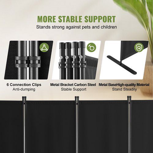 Stabile & zuverlässige Konstruktion: Unser 4-teiliger Raumteiler lässt sich mit 9 Verbindungsclips und einem Metallrahmen aus Karbonstahl einfach zusammenbauen. Für zusätzliche Stabilität haben wir zwei Metallsockel mitgeliefert. Dadurch ist unsere Trennwand stabil und kann nicht so leicht von Haustieren oder Kindern umgestoßen werden.