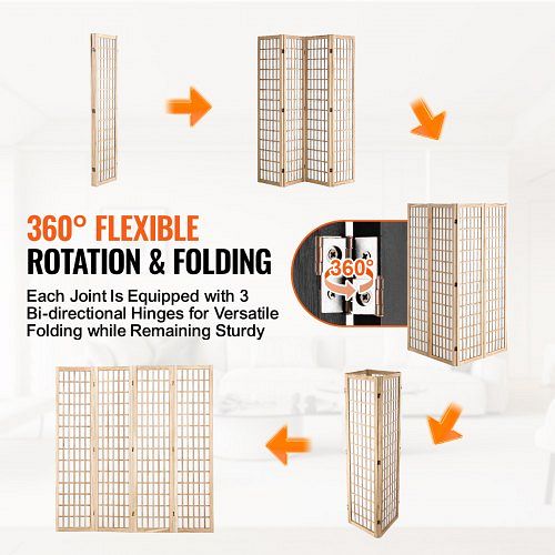 VEVOR 4-tlg. Raumteiler Paravent, faltbarer japanischer Sichtschutz, Dekorationsschirm für Büro/Restaurant/Schlafzimmer (Natur), RSPF4MBCSPMMN139F001V0, 0197988879275