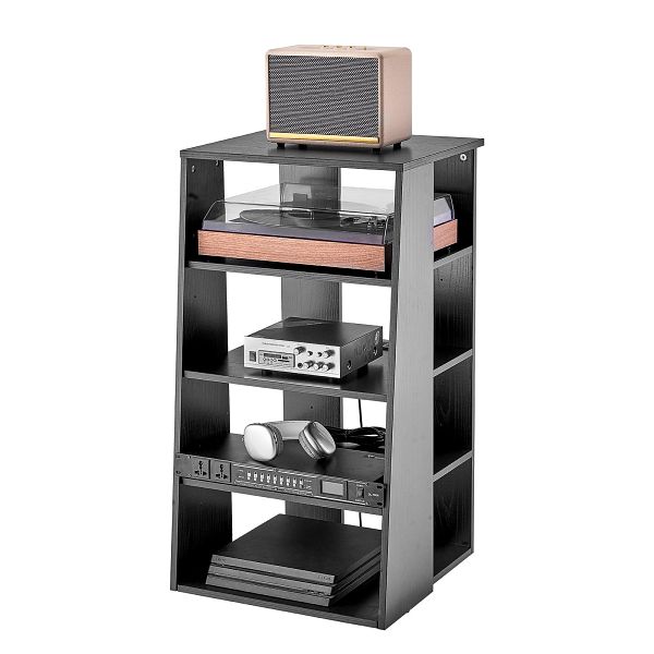 - Aufbewahrung auf mehreren Ebenen: Mit vier offenen Regalfächern bietet dieses AV-Medienregal viel Platz für Ihre Stereoanlage. Das offene Design und die verschiedenen Ebenen erleichtern die Platzierung und den Zugriff auf Geräte wie Recorder, DVD-Player, Kabelboxen, Subwoofer und Plattenspieler.