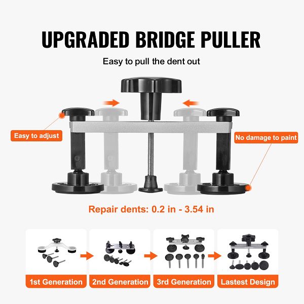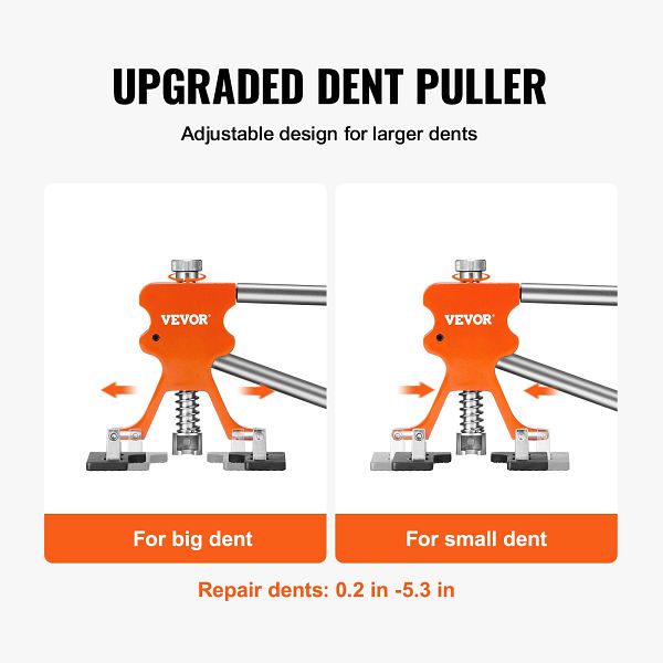 - Professioneller Dellenheber: Unser goldener Dellenheber ist aus hochwertigem Aluminium gefertigt und verfügt über ein Upgrade an der Unterseite, sodass Sie die Breite und Höhe für verschiedene Dellen einstellen können. Dellenbereich: 0,5-13,5 cm. Die einzigartige gewölbte Brückenkonstruktion reduziert die Möglichkeit zusätzlicher Beschädigungen. Er hat einen großen und zwei kleine Bolzen. Sie können den Abstand leicht einstellen und den Knopf drehen, um die Dellen besser anzupassen. Anwendbarer Dellenbereich: 0,5-9 cm.