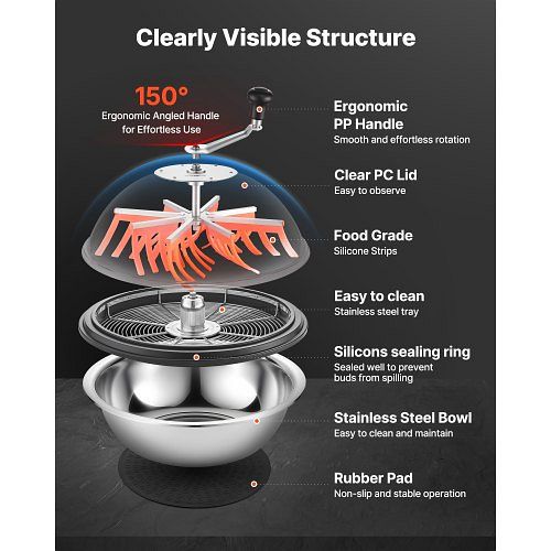 - Praktisches Top-Loading-System: Der robuste obere Rahmen hält den Knospenblatt-Schüsselschneider sicher an seinem Platz, während sich der aufklappbare obere Deckel für eine kontinuierliche Beschickung leicht öffnen lässt – so bleibt Ihr Arbeitsablauf reibungslos und ohne Unterbrechungen.