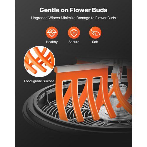 - Langlebig und pflegeleicht: Die scharfen Edelstahlklingen sind schnell zerlegbar und reinigungsfreundlich und sorgen für schnelle, saubere Schnitte – das spart Zeit und Mühe. Die verstellbaren und austauschbaren Klingen eignen sich für verschiedene Trimmanforderungen. Die lebensmittelechten Silikonfinger sind geruchsneutral und tragen zur Erhaltung der Blütenqualität bei.