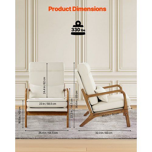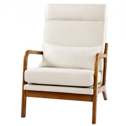 VEVOR Akzentstuhl modern, hohe Rückenlehne, Massivholzrahmen, rutschfeste Beine, gepolstert, Leinenstoff & dickes Kissen, MZZSY1JTYMBGKU2OA001V0, 0197988147329