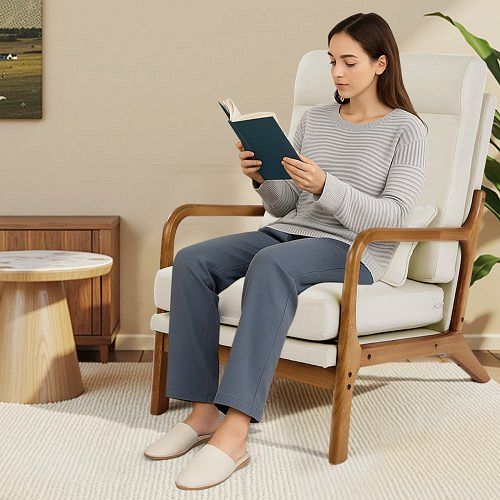 Ergonomisches Design: Dieser Holz-Akzentstuhl verfügt über einen 105°-Rückenwinkel, ein breiteres Kissen und eine höhere Rückenlehne und bietet so eine verbesserte Unterstützung für Rücken, Schultern und Nacken. Er hilft Ihrer Wirbelsäule, den Druck zu verteilen, sodass Sie sich entspannen und eine bequeme Sitzposition ohne Belastung bei längerem Gebrauch genießen können