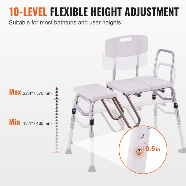 Machen Sie Ihr Badezimmererlebnis sicherer mit der Badewannen-Transferbank von VEVOR. Diese Badewannen-Transferbank ist perfekt für Senioren, Behinderte und Schwangere geeignet und verfügt über eine 10-fach einstellbare Höhe, eine Tragkraft von 180 kg.