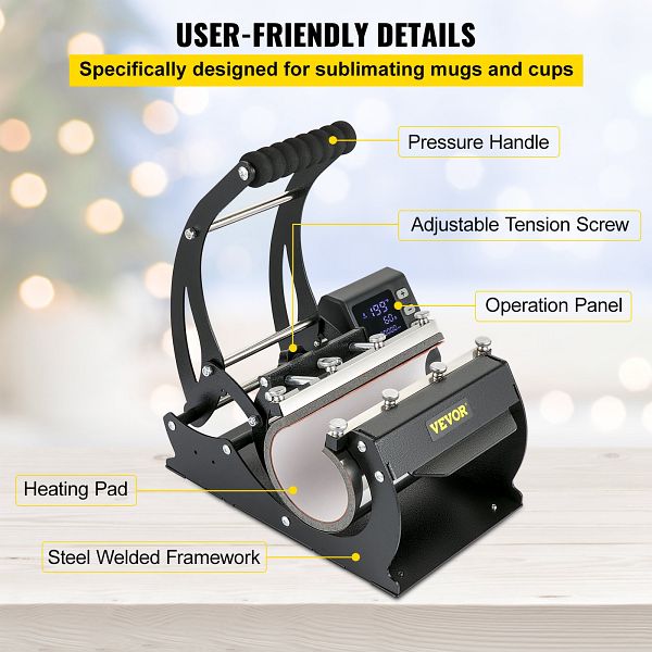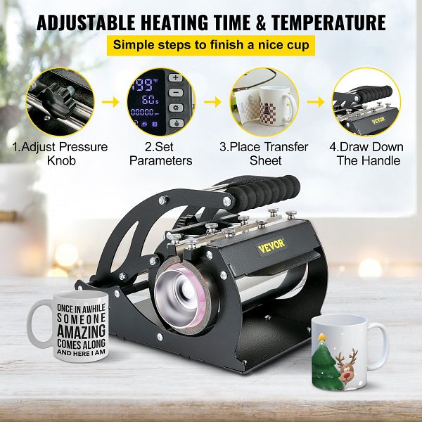 - Starker & stabiler Rahmen: Unsere Tassenhitzepresse ist sorgfältig geschweißt und aufgebaut. Je nach Dicke des zu bearbeitende Objekt oder Material können Sie den Druckknopf einstellen und somit das beste Übertragungsergebnis erzielen. Vier Saugnäpfe sind an der Unterseite hinzugefügt, um eine hervorragende Tragebalance zu gewährleisten