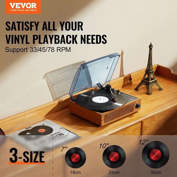 VEVOR Bluetooth Plattenspieler 3Gang Riemenantrieb, 3W Lautsprecher 33/45/78U/min, LSJ13S000000J6DK4V2