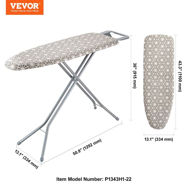 - Volle Größe & platzsparend: Die Bügelfläche des VEVOR-Bügelbrettes misst 43,3 x 13,1 Zoll (1100 x 334 mm) und bietet ausreichend Platz zum regelmäßigen Bügeln, Steppen, Stricken und sogar zum Bügeln von Tischdecken. Das Bügelbrett lässt sich leicht zusammenklappen, sodass es platzsparend in einem Schrank, hinter einer Tür oder in der Waschküche aufbewahrt werden kann.
