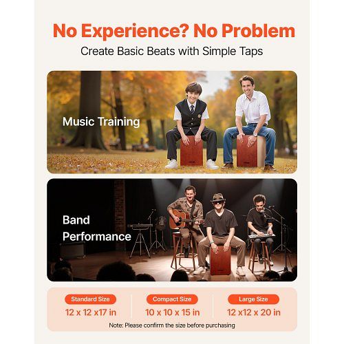 VEVOR Cajon, Kistentrommel mit Gitarrensaiten, leichte Holz-Drum-Box, tragbar, inkl. Reisetasche, 305x305x430 mm, MXGCGKJTXDBXXFWY8001V0, 0197988695714