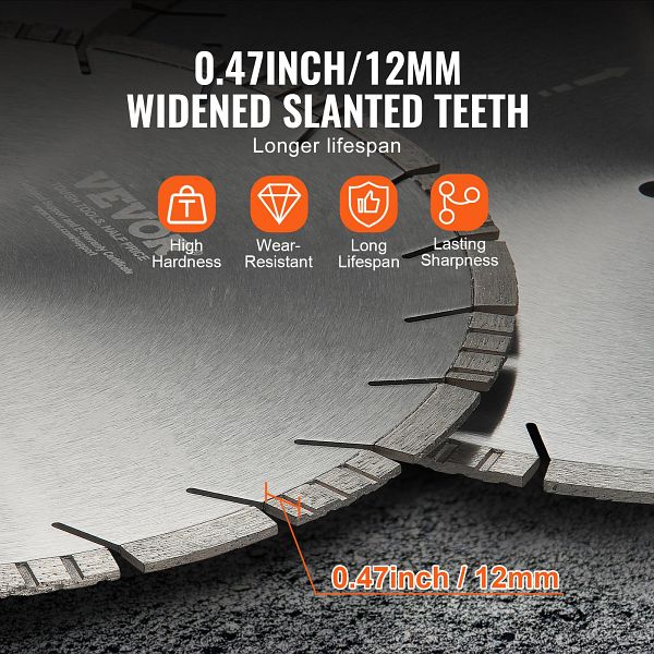 VEVOR Diamant-Sägeblatt Beton-Sägeblatt Nass/Trocken Schräge Zähne 50cm, JGSQGJP500MM22T18V0, 0197988225140